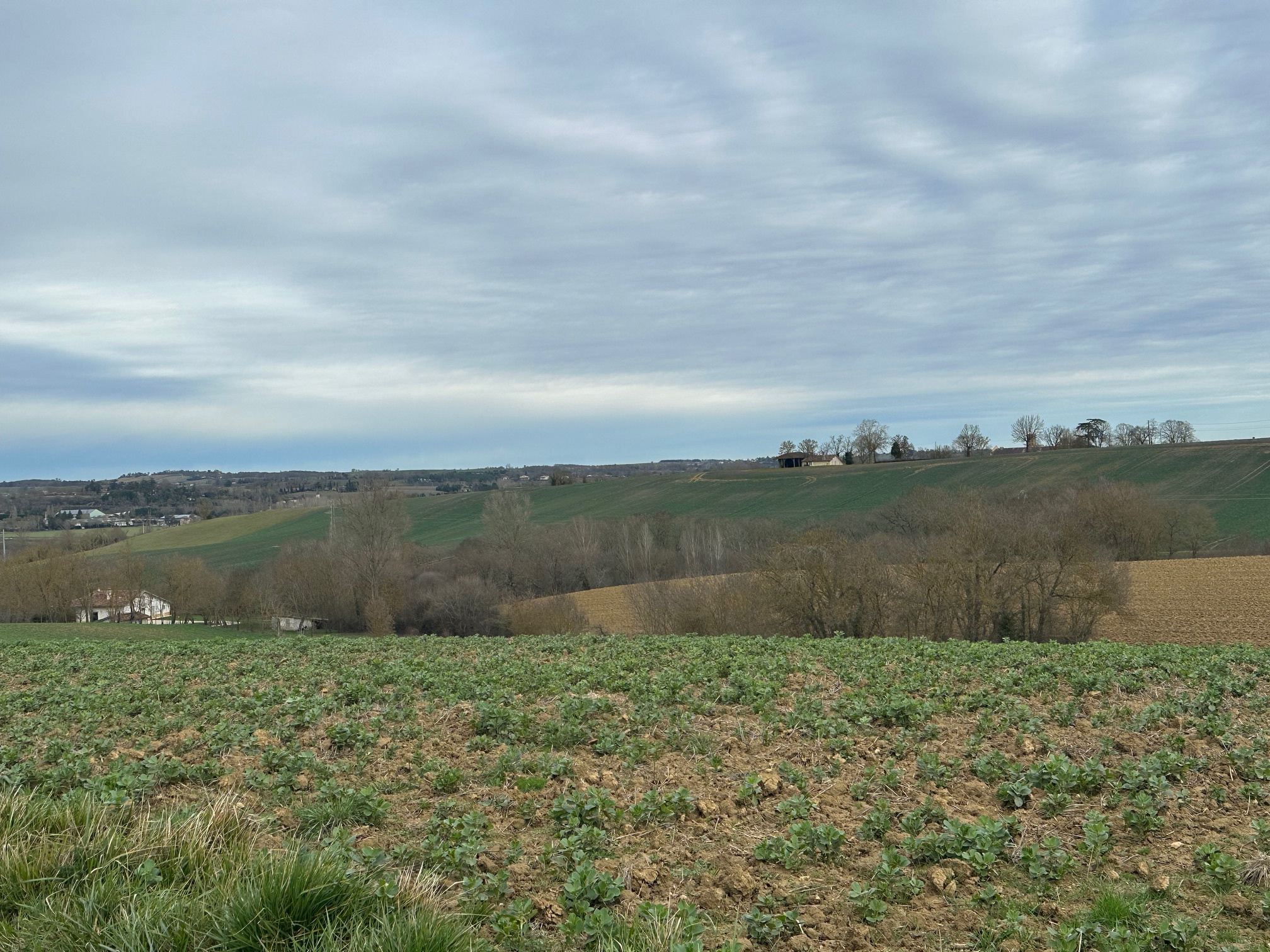 Gimont, à vendre, terrain à bâtir d’une surface de 2500 m2 dont 1000 m2 constructibles, Situé dans un bout de quartier résidentiel, sans vis à vis direct, entouré de champs.