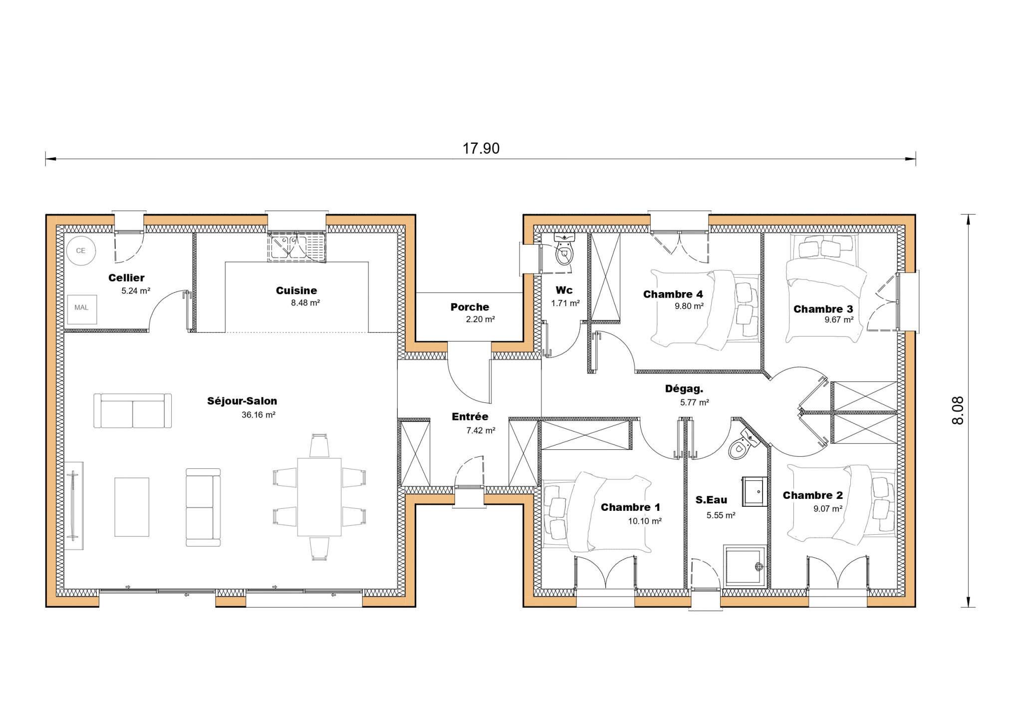 Aux portes de Mont de Marsan à Benquet, venez découvrir ce terrain de 530 m2 entièrement viabilisé dans un futur lotissement, Très bien exposé dans un environnement privilégié: calme, 10 min de Mont De Marsan, Sur ce lot les maisons Sic vous propose le modèle Carat de 109 m2 comprenant 2 parties bien distinctes, d’un côté un grand séjour avec cuisine ouverte et de l’autre la partie nuit avec 2 grandes chambres avec salle de bains et une suite parentale avec salle d’eau et dressing.
