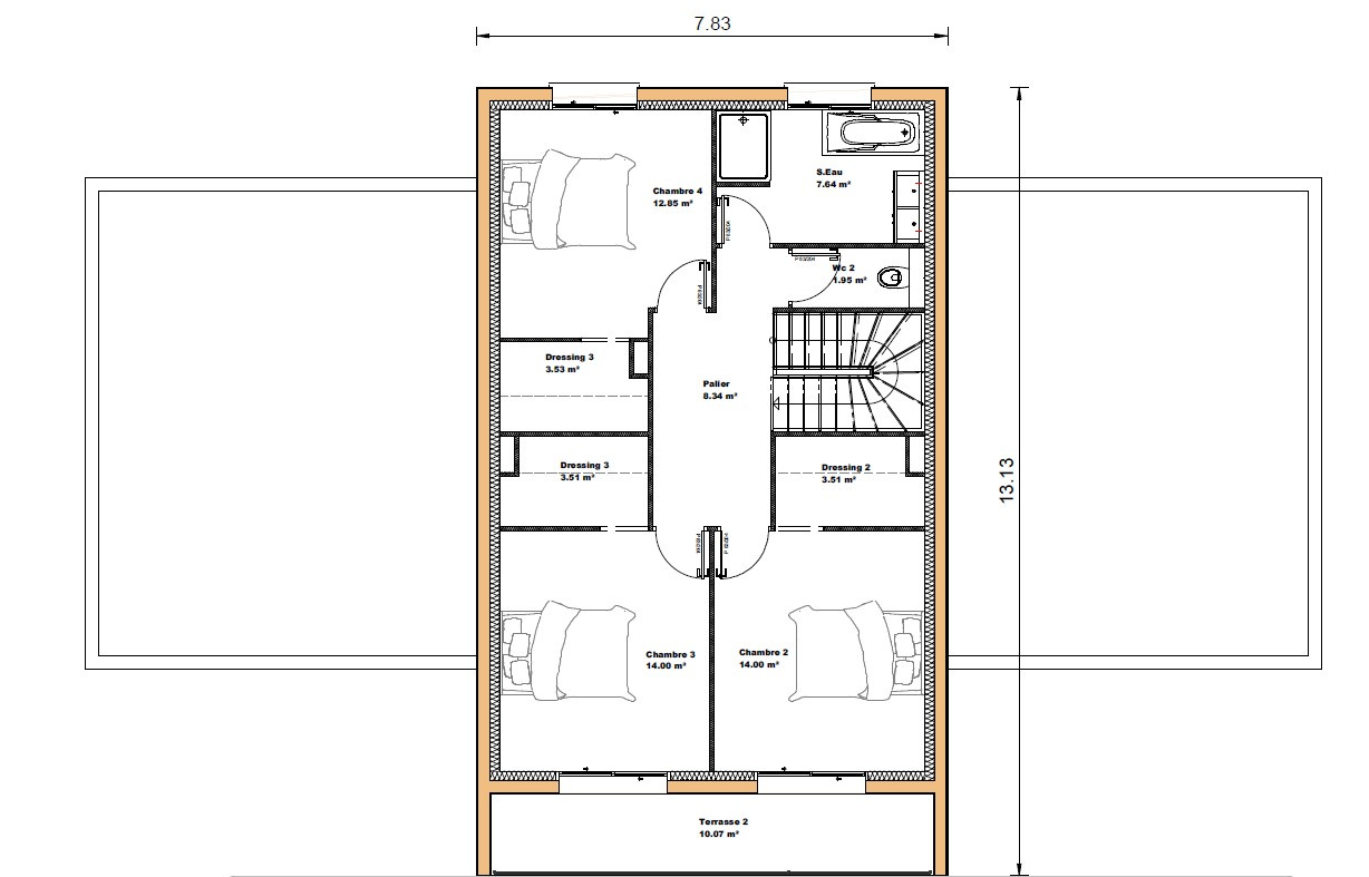 À l’étage, trois chambres supplémentaires avec dressing offrent confort et intimité.