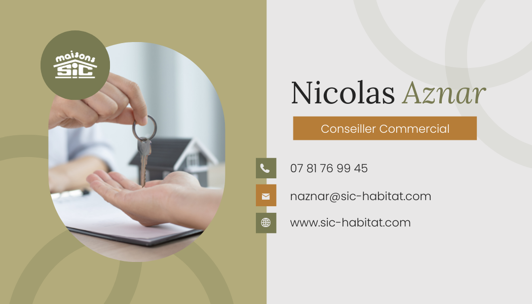 Intéressé(e) ?Pour plus d’informations, contactez votre conseiller maisons Sic -Nicolas Aznar- O7 81 76 99 45 Exemple d’enveloppe budgétaire pour la réalisation d’une Maison Sic sur le terrain de l’un de nos partenaires fonciers.