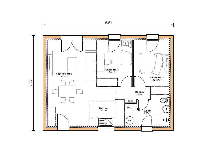 Votre future maison: Surface habitable de 58 m2 2 chambres avec placards intégrés Salle d’eau et Wc séparés Pièce de vie lumineuse avec cuisine ouverte, idéale pour partager des moments conviviaux en famille ou entre amis Un investissement maîtrisé: Prix global estimé à 153 750 € Maison Terrain de 739 m2 Vrd (voiries et réseaux divers) Un terrain idéalement situé: 739 m2 dans un quartier résidentiel calme, proche de toutes les commodités Intéressé(e) ?Pour plus d’informations, contactez votre conseiller maisons Sic -Nicolas Aznar- O7 81 76 99 45 Exemple d’enveloppe budgétaire pour la réalisation d’une Maison Sic sur le terrain de l’un de nos partenaires fonciers.