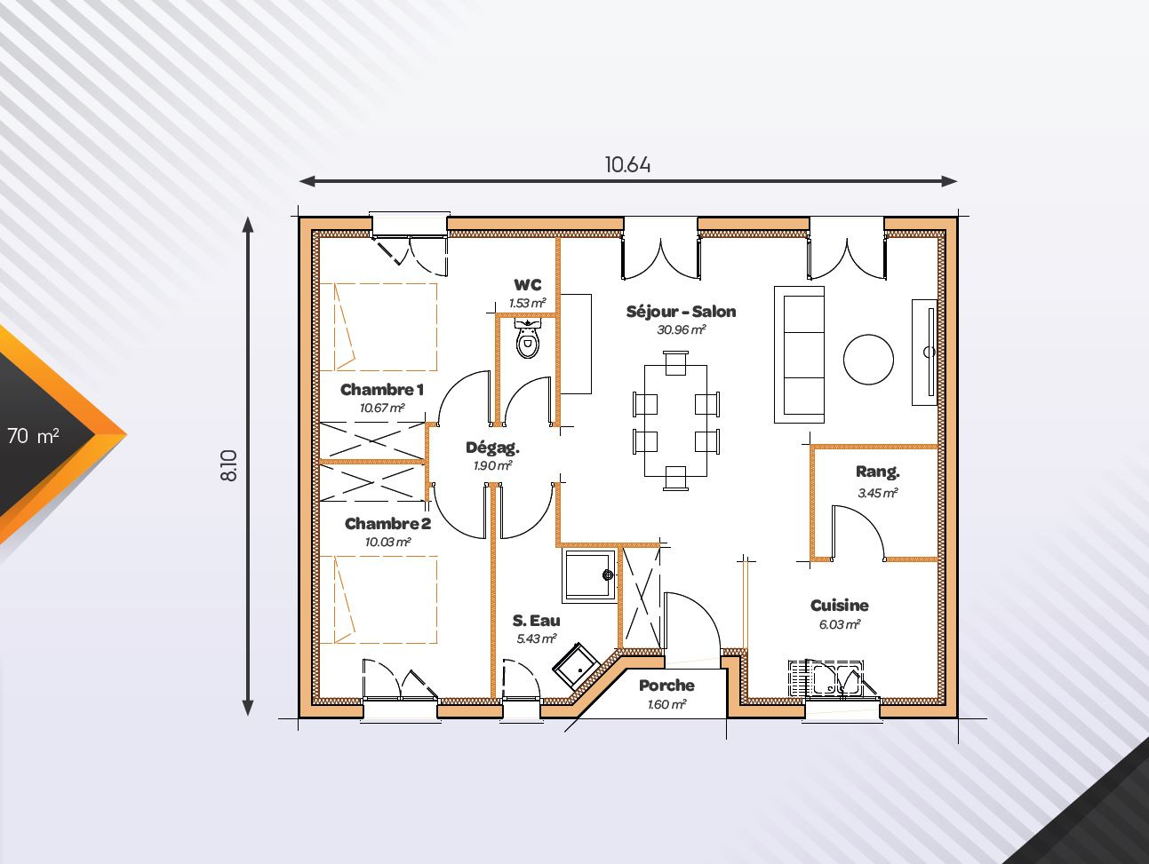 Agencement Intelligent: Une surface de 70 m2 optimisée pour éviter les espaces perdus et faciliter l’entretien ainsi que la circulation au quotidien.